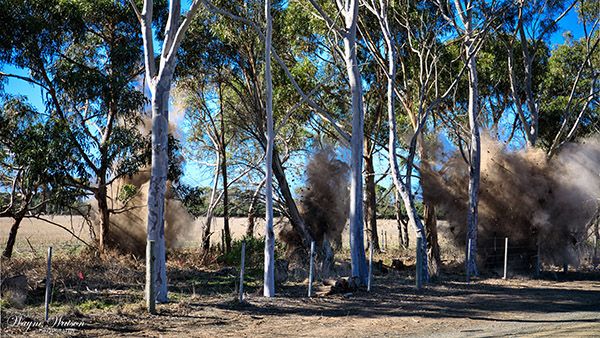 Our image shows the effect of placing small explosives in a warren and destroying the warren after the rabbits are fumigated. This work makes a huge difference to the outcome but needs to be done by experts - see how the vegetation is preserved.